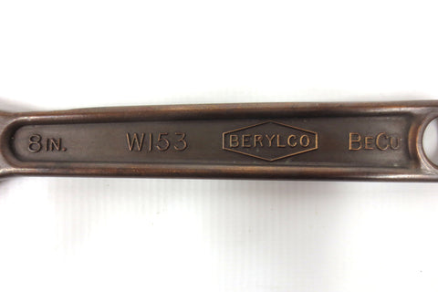 Excellent condition, fully functional, solid berylium copper. 8 inches long adjustable wrench, non-spark and non-magnetic, signed Berylco BeCu. Model W153, Made in U.S.A.