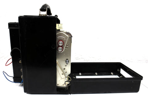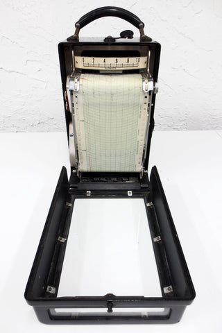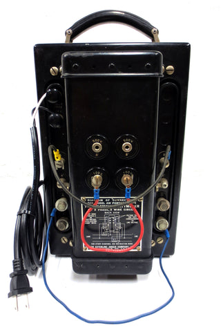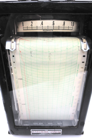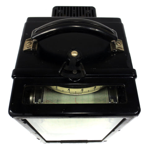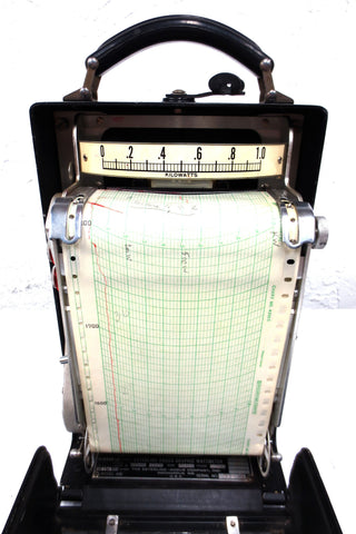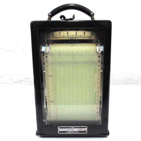 Tested and working, new power cord installed, connects to a standard type A electrical outlet. Two element wattmeter on 3 phase and 3 wire circuit by Esterline-Angus, Indianapolis, U.S.A., serial 135977. Very clean, original paint, glass windows intact. Original connection diagram on back and paper roll installed. Easily opens and closes with a latch. Portable unit, sturdy rubber handle, weighs 28 pounds and measures 8.5 X 11 X 15 inches. From a collector's estate in Montreal (Quebec, Canada).