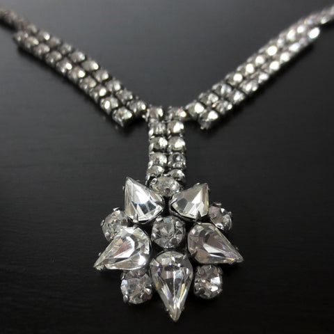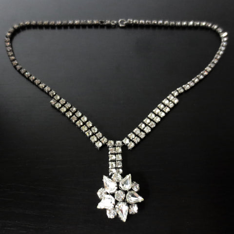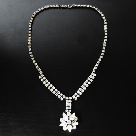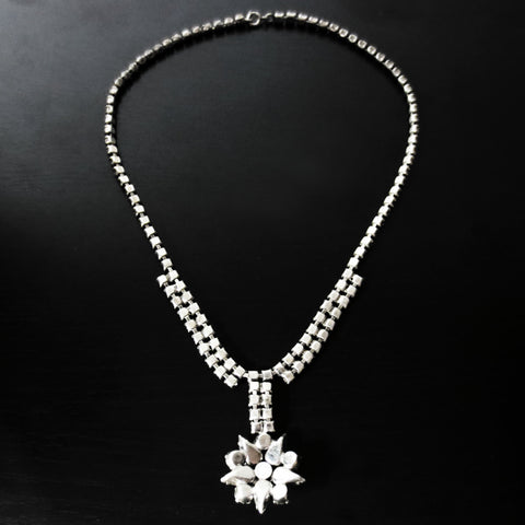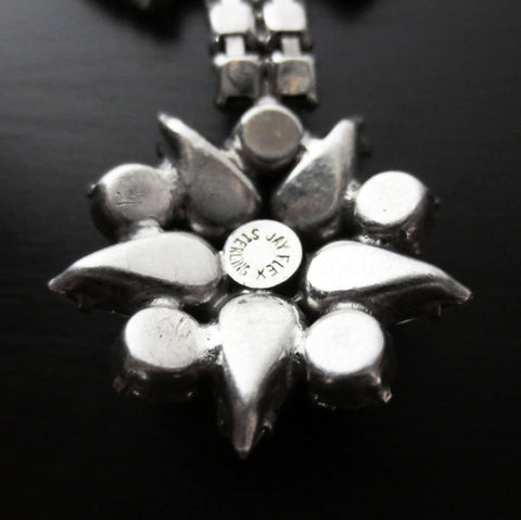 Excellent condition, vintage 15" necklace signed Jay Flex Sterling. Clean and ready to wear. Silver rhodium plated base and glass stones, pendant daisy with teardrop stones. Sturdy spring ring clasp. For a chic evening out.