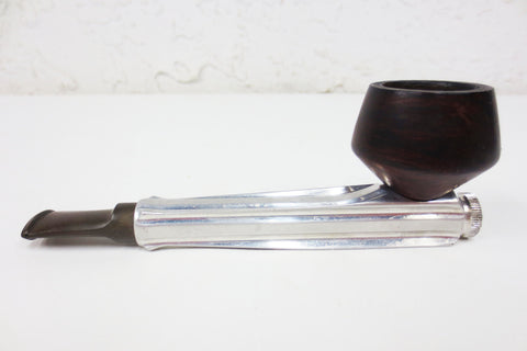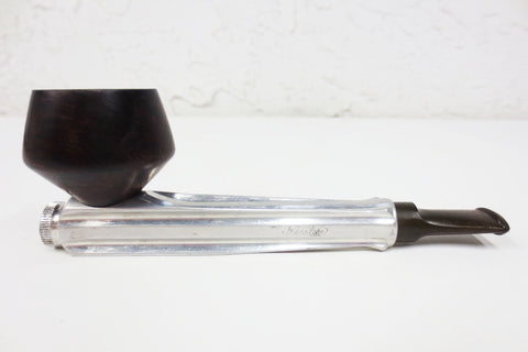Vintage Kirsten M Aluminum Estate Tobacco Pipe 5 1/4" Long, Modernist Wood Bowl