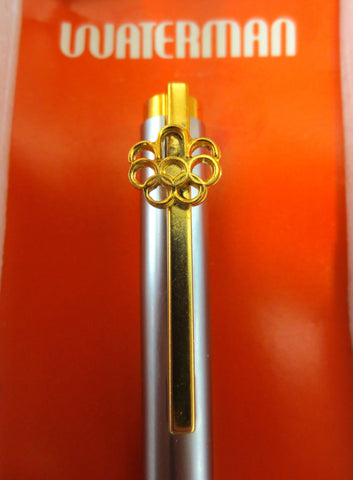 Vintage Limited Edition Waterman Ball Pen Montreal 1976 Olympics, 3D Olympics Emblem on Clip, Two Tone Silver & Gold, Box and Warranty