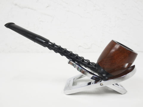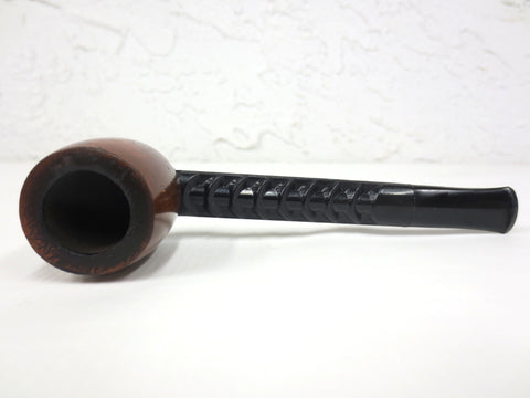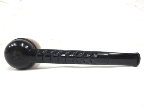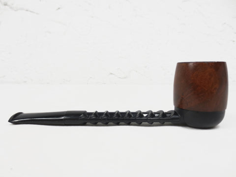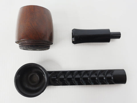 Excellent condition, professionally cleaned, unique design. Mid century tobacco pipe from France with a removable wood bowl and a black ribbed nylon body. Beautiful light brown wooden bowl. Signed Rocket France. Disassembles in 3 parts, easy to clean. Measures 5 1/2 long, 1 1/2 tall bowl with a 1 1/8 external diameter.