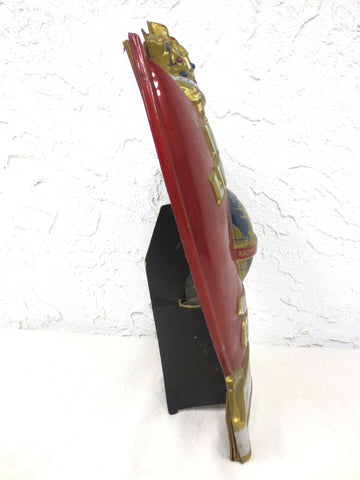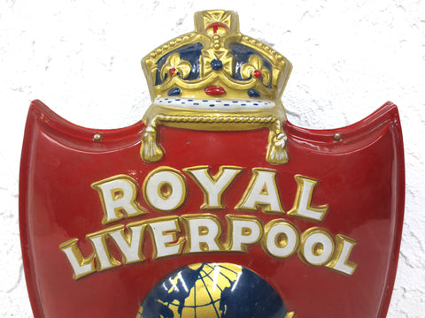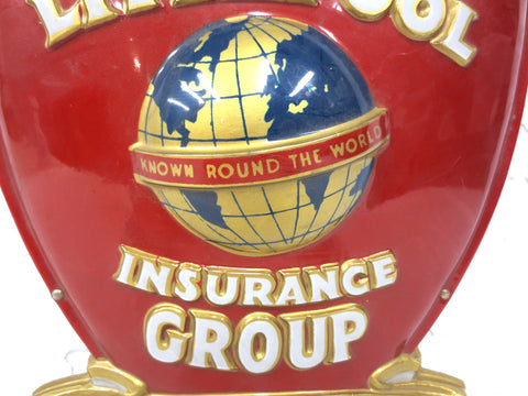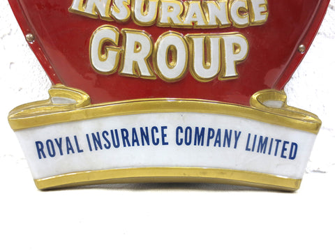 Complete, no cracks, signed. Still stands well on its own. Legs can be folded to hang it on a wall. Rare cardboard and plastic advertising sign for the Royal Liverpool Insurance group, made by Associated Advertising, Weston, Ontario (Canada). Measures 13 x 9 x 1.5 inches. Thick cardboard base and plastic face.