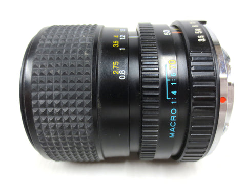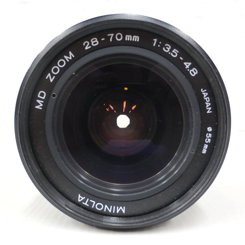 Excellent condition, clear and clean lens, fully functional. This is a Minolta MD zoom lens, SR-mount, 28-70mm f/3.5-4.8, Macro, manual-focus SLR. Serial 55205796, made in Japan.