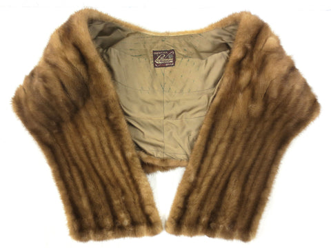Vintage Natural Mink Fur Shawl 67", Royal Pastel Mink Wrap Stole Cape, Pockets