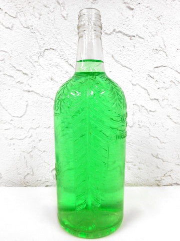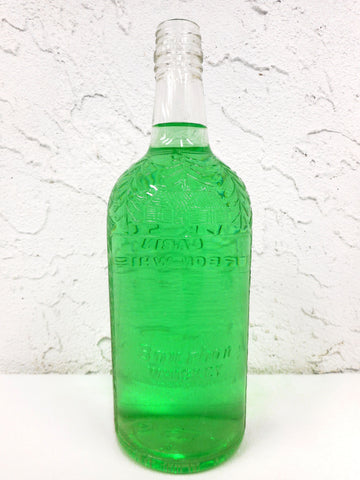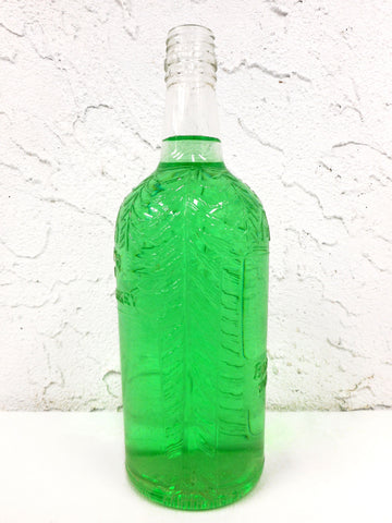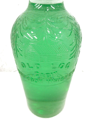 Excellent condition, very clean, no chips. Marked "Old Log Cabin Bourbon Whiskey 51", signed by the Diamond Glass Company, letter "D" in a diamond at the bottom. Beautiful embossed traditional log cabin and pine trees over the entire bottle. Bottle is empty, no cap. 30 ounces, 10 1/2 inches tall, 3 inches diameter.