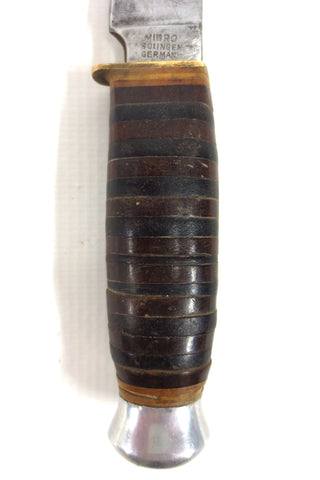 Vintage Solingen Mibro Germany Hunting Knife 7 1/2", Stacked Leather Handle