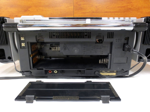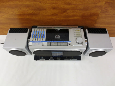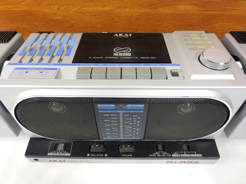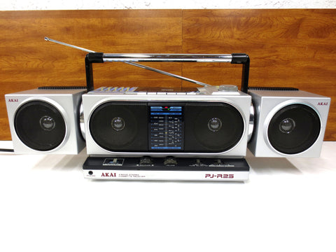 Vintage Futuristic AKAI Boombox 4 Band Cassette Stereo Receiver, Model PJ-R25FU Made in Japan, 2 Detachable Speakers
