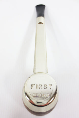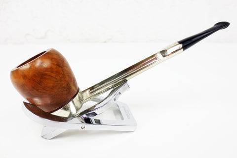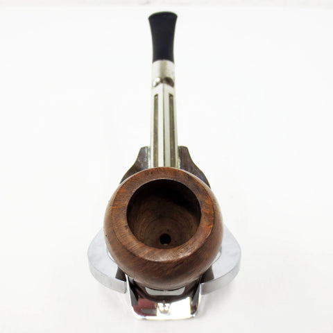 Excellent condition, modernist estate tobacco pipe signed FIRST, made in France. Silver nylon body, exchangeable 1 1/4" tall wood bowl, 1 1/4" outside diameter. Pipe measures 5 3/4" long. Disassembles in 3 parts. Professionally cleaned, ready to use. From a collector's estate. Stand not included.