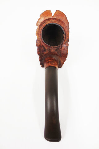 Excellent condition, vintage figural tobacco pipe from a collector's estate. Ready to use, professionally cleaned. Original stem, perfect fit and holds well, no teeth marks. Bowl is hand carved and signed Genuine Briar from Italy, light brown wood. Beautifully detailed head of a Native Indian Chief. Small size pocket pipe measures 4 1/4" long, bowl is 1 5/8" tall and 1 1/8" wide. Stand not included.