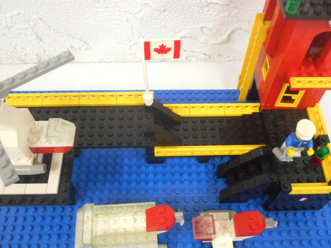 All original parts from the same playset dated 1977, with its manual. Pieces are all in excellent condition, very clean, none broken. Build measures 12½" wide X 7½" deep X 9" high. This is one of the builds from set #575. It is complete and follows instructions. Includes 1 helicopter and its helipad, 1 original figurine found with accessories, 2 sea hovercraft vehicles and 1 yellow ladder. Main sections will be separated for shipping. From a private collection.
