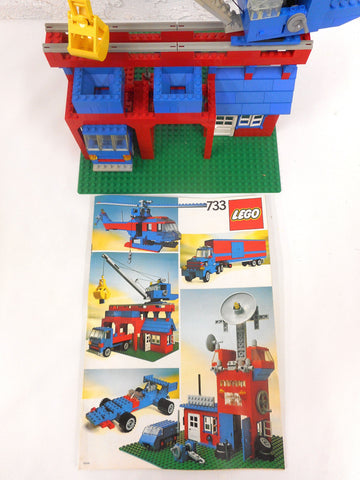 All original parts from the same playset dated 1980, with its manual printed in Germany. Pieces are all in excellent condition, very clean, none broken. Build measures 10" wide X 10" deep X 10" high. This is one of the builds from set #733. It is complete and follows instructions. Other parts needed (not included) to make the alternate models in the manual. Main sections will be separated for shipping. From a private collection.