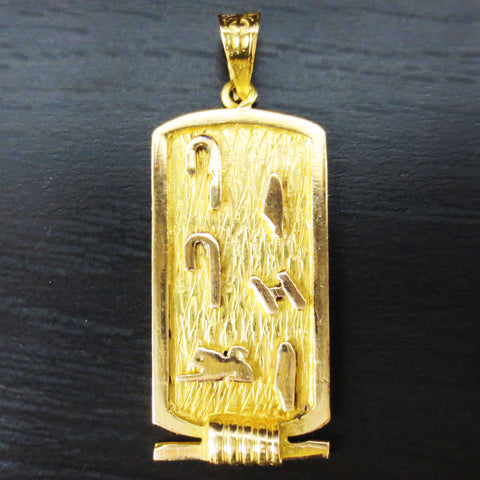 18k Yellow Gold Egyptian Hieroglyphic Cartouche Necklace Pendant from Cairo