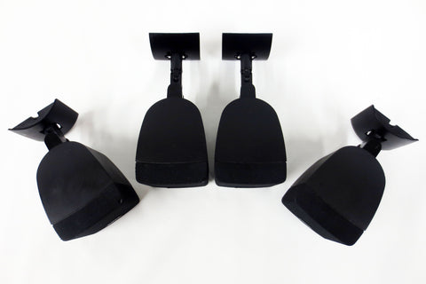 All 4 in excellent condition, tested, complete with 180° articulated arm wall mounts. High quality single cube speakers signed Bose from the Acoustimass Lifestyle series. Very clean, light scratches and wear on covers. Each speaker measures 3x4 inches. 2 speakers measure 7 inches long including their arms, 2 have shorter arms (-1 in). No wires included.