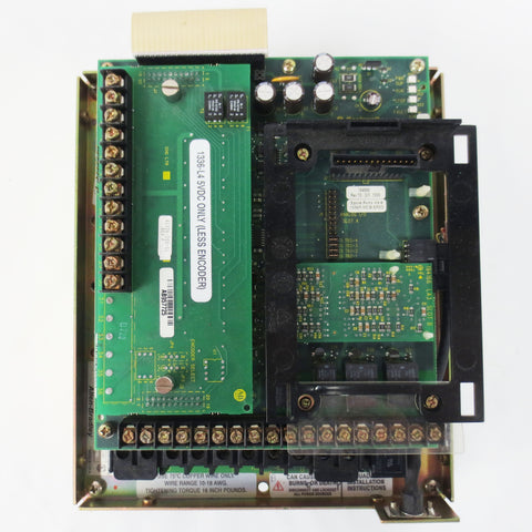 Like new condition, inspected and functional. Allen-Bradley 3HP AC vector drive model 1336F-BRF30-AN-EN, series B. 3 open phase, 380-480 VAC. Serial 1JAJ1XI6. Cover and keypad not included. Measures 11 1/2 X 8 1/2 X 6 and weighs 9 pounds.