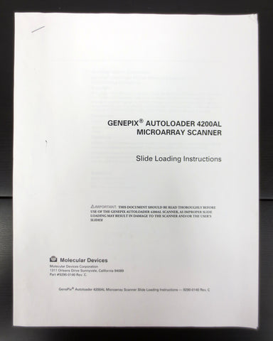 - Genepix Autoloader 4200AL microarray scanner User's Guide
