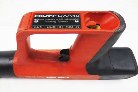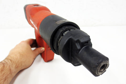 Serviced, very clean, fully functional. Professional powder actuated concrete nail gun model DX A40 by Hilti, made in Liechtenstein. Complete, no cracks, minor surface wear only. Weighs 2.98 kg and measures 15.5 X 7 X 2.5 inches.