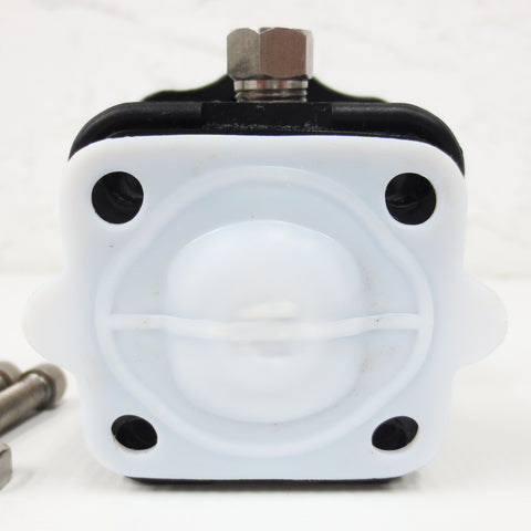Very clean, inspected and functional. 1/2 inches PAS diaphragm valve by ITT Pure-Flo. 4 nuts, 4 bolts, top cover and bottom spacer (white) included. Weighs 312 gr, 3 X 3 1/2 X 3 inches.