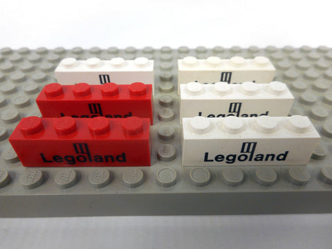 Lot of 6 Vintage 1980's Legoland Printed Bricks Blocks,  Lego Playset Parts, 1 X 4"