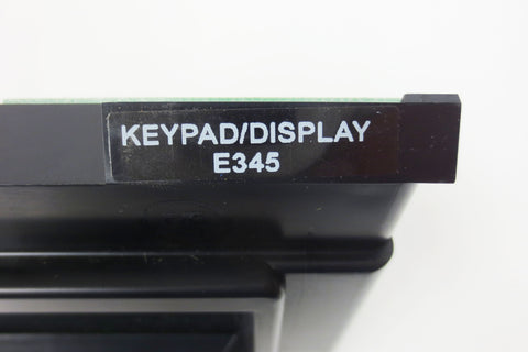 New, inspected and functional, no box. Industrial keypad and LCD display model Fireye E345 by Allen-Bradley. Measures 5 X 5 3/4 inches.