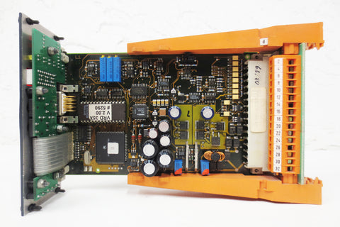 New, inspected and functional, no box. Control card with digital display model VRD350 Hydraulik Ring, by Parker Motion & Control. Includes a used Weidmuller 32 entries connector model 410 234-2. Card display panel size is 2 X 5 inches, total card size 7 1/2 X 5.