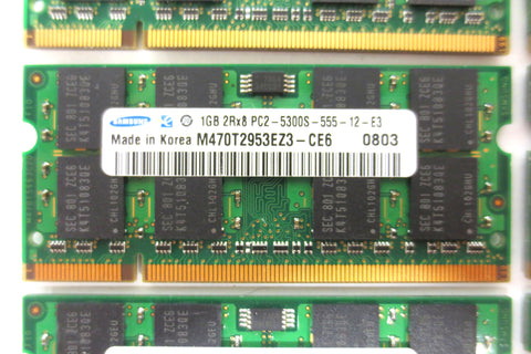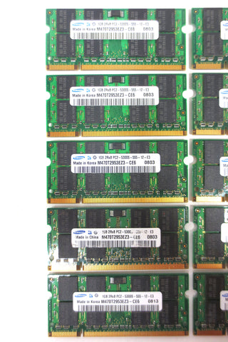 New, tested, guaranteed 30 days. 10 X 1GB memory RAM by Samsung. Specifications: DDR2, 667MHz, PC2-5300S-555-12-E3, SODIMM, M470T2953EZ3-CE6.