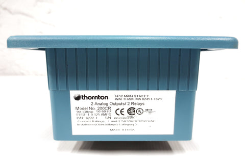 New and functional, inspected, no box. Surplus from an aluminum manufacturer. Conductivity and resistivity sensor 200CR by Thornton, part number 6222-1. Specifications: 90-130 VAC, 50-60 HZ, 125 AMPS. Weighs 864 grams and measures 8 1/2 X 4 3/4 X 3 1/4 inches.