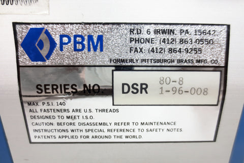 PBM Pneumatic Actuator Valve with Indicator 140 PSI, Series DSR 80-8, 1-96-008