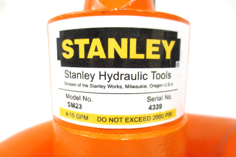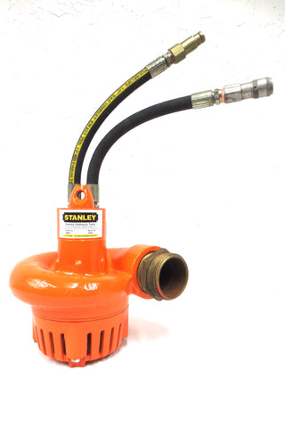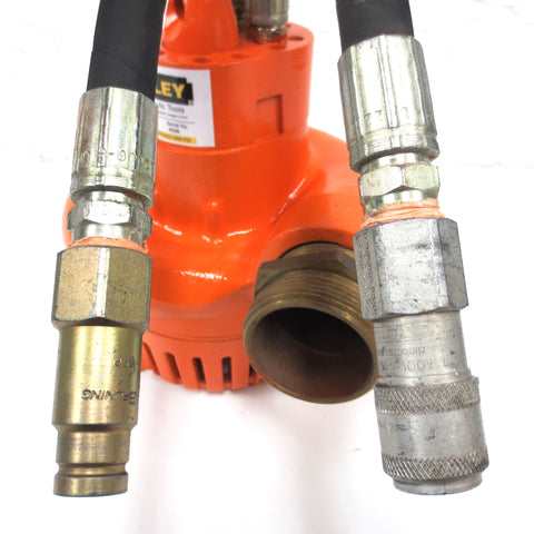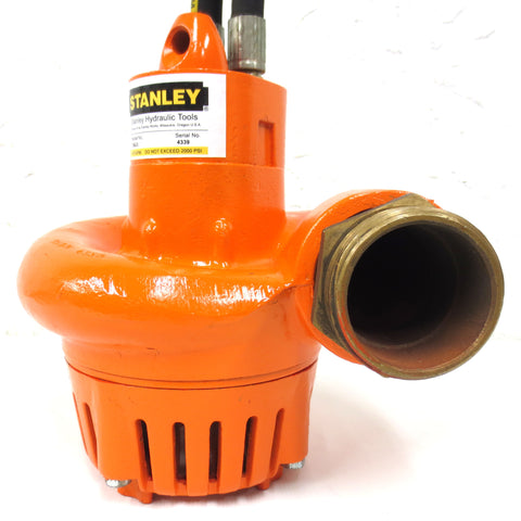 All 5 pumps are in excellent working condition, serviced and very clean. 5 heavy duty hydraulic water and trash pumps by Stanley, all are model SM23-B, serials 4339, 4343, 4332, 4375 and 4356. Four pumps have a 2 1/2 inches discharge brass fitting and all 5 pumps have half inch quick couplers (Aeroquip FD49 and Parker Bruning 3000 psi, in and out flow). Three pumps have their couplers installed on Dunlop Pulselife tubes max pressure 275 bar/4000 psi (total length 16 inches each). Two pumps have their couplers installed on Aeroquip Hi-Implulse 2781-8 tubes (total length 26 inches each). Specifications for all pumps: Runs dry without damage, integral motor, 1000-2000 psi pressure, 375 gpm capacity, 8-15 gpm flow range and -8 SAE O-ring porting. Acquired from Canada National Defense.