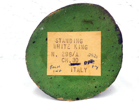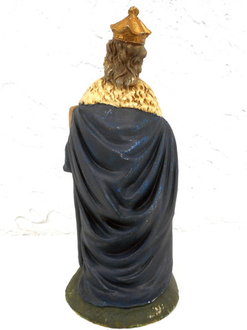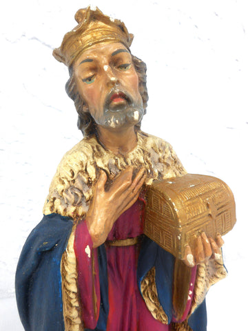 Tall 11" Vintage Christmas King Wizard Manger Creche Figurine in Paper Maché Made in Italy, Standing White King with Gold Treasure