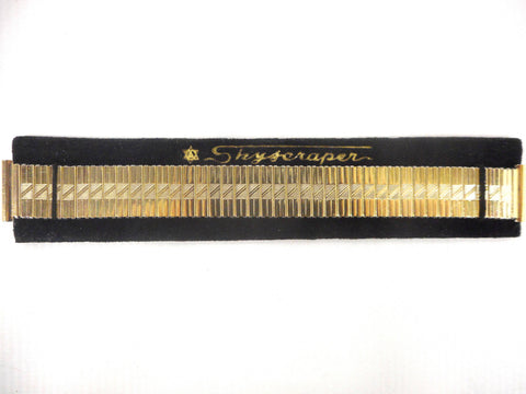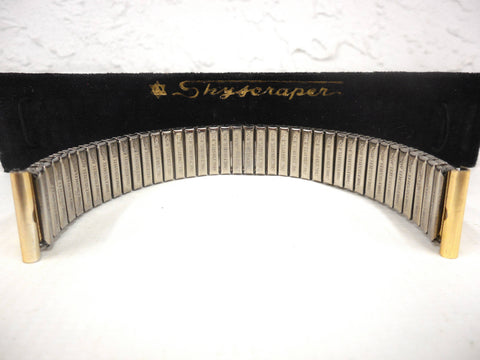 Perfect condition, from the 1960's, never used (New old stock). For 17 mm watches. Still on its original Skyscraper display felt. Extensible watch band with a flag pattern in the middle. Golden metal and stainless steel back. 6 1/8 inches long. Will complete and refresh the look of your vintage watch.