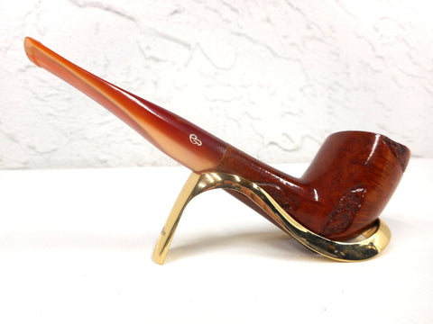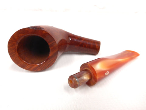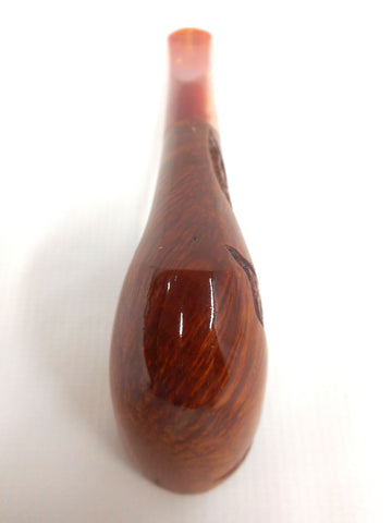 Christmas liquidation ends on the 31st. Perfect condition, never smoked, 5 1/4" long, 2" high bowl. Beautiful butterscotch stem with the Paradis logo, several hand carved leaves on the bowl. Hand made by the Paradis family in Quebec. This is a vintage and out of stock tobacco pipe from an estate in Montreal, Quebec, Canada.
