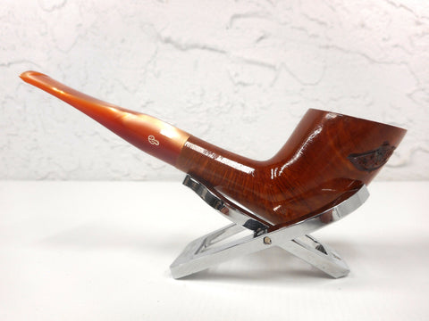 Christmas liquidation ends on the 31st. Perfect condition, never smoked, 5 1/4" long, 2" high bowl. Beautiful butterscotch stem with the Paradis logo, one leave carved on the bowl. Hand made by the Paradis family in Quebec. This is a vintage and out of stock tobacco pipe from an estate in Montreal, Quebec, Canada.