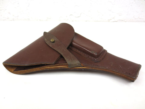 Vintage WWII German Military Police Pistol Gun Revolver Holster Thick Leather 8.75 X 6.5", Flap Over, Brass Button, Lot #4
