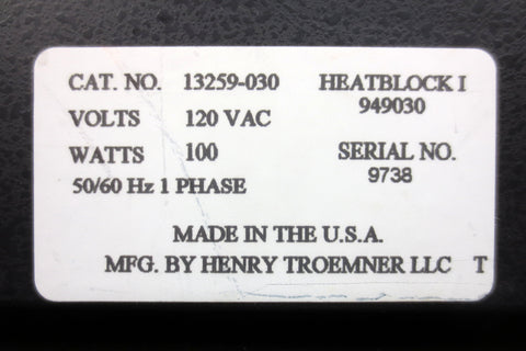 Tested, working and very clean. Health Canada surplus. Laboratory heatblock I model 13259-030 by VWR Scientific, serial 9738, made in U.S.A.